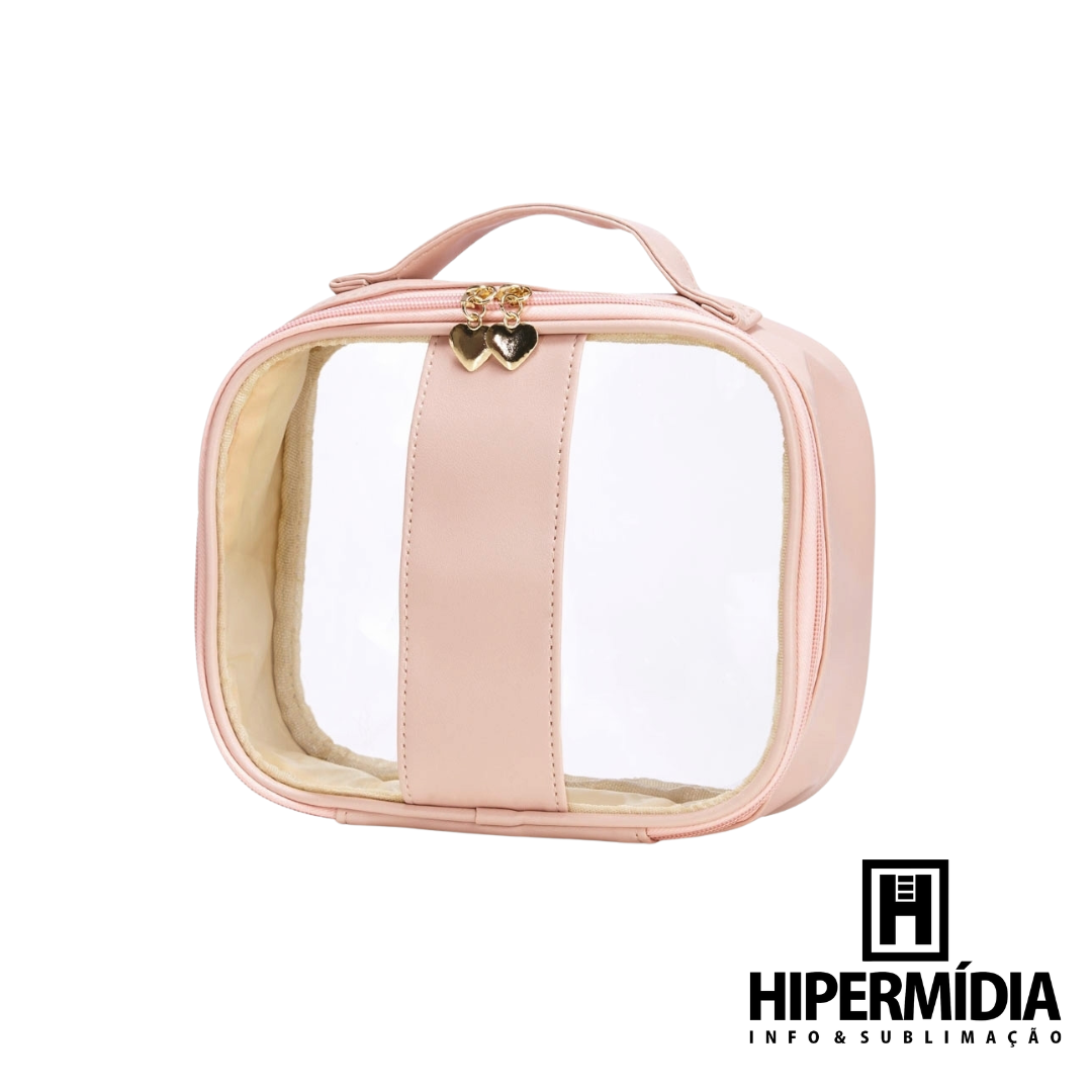 Descrição: Um nécessaire do tamanho excelente para levar o que é importante no dia a dia sem deixar nada para trás. Feita em PVC e com bordas em PU, ela é impermeável, fazendo com que ela também seja uma opção segura e funcional para carregar itens essenciais para um banho de mar ou piscina como protetores solares, bronzeadores, entre outros produtos para cuidados com a pele e cabelos. Além disso, o nécessaire conta com uma alça para mãos e fechamento em zíper com puxadores em formato de coração para dar aquele toque extra de charme