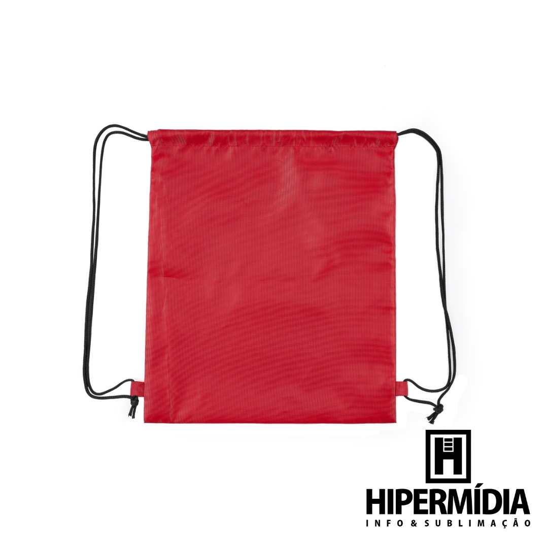Descrição: Mochila saco multifuncional em poliéster impermeável com cordões de nylon que servem tanto para fechamento quanto como alças de costas.